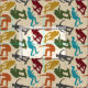 Skapa presenter och mer för din favoritskater med den här designade väven. Beskrivningar av skateboarders i mörk rött, orange, senapsfärg, gult, grönt, turkosblått och kol-grått mot bakgrund av faux woodgrain.