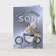 Två vackra dam står bredvid en motorcykel. Ett underbart kort till mannen som vill åka!
