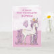 En söt rosa för ponny något liknande precis som din stor- sondotter kråma sig med numrera en! Tittar guld specificerar vävas i henne manen och svanen. Perfekt kort som önskar din stor- sondotter henne 4e födelsedagen! Personifiera detta kort med din stor- sondotter namn.