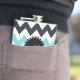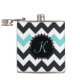 Ett sofistikerat sparremönster i svart, vit och aqua är bakgrund till en centreramedaljong som inramas i mycket små fleur de lis, redo för att skräddarsy med ditt egna initialt, daterar eller annat meddelande.