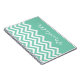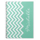 För sparremönster för Mint grön anteckningsbok med namn eller monogramen. Eleganta sicksackrandar planlägger med skrivar calligraphytypografi. Gulligt skola/kontorsmateriel för kvinnor och tonåring flickor.