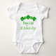 Klänningbebis i grönt för st patrick's day med detta gulliga fyrklövra irländska 1st st patrick's daycitationstecken för gräns och baby på en bebistshirt.
