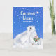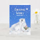 Jul-Önskemål för ett stepmos, pappert hälsningskort med en målningsillustration av en polar i baby, ge sin styvmamma en kyss. Polarna i mor håller en bukett av bär, holly och gräs. Snö faller och en stor stjärna lyser ljust. Art, bild och versell copyright © Shoaff Ballanger Studios, 2023.