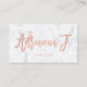 En elegant modern stilfull beställnings- visitkort för konstnär för logotyphårsalong med elegant skrivar bokstäverstiltypografi i faux som rosa guld omkullkastar på en bakgrund för trendig- och elegantvitmarmor.