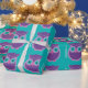 För ugglapersonlig för gullig purpurfärgad kricka som förtjusande flickor slår in papper. Den nätt ljusa och färgrika ugglan i rosa kricka och lilor på en kricka färgade bakgrund. Personifiera med namn och sjalen upp för en uggla som älskar flickan eller en themed födelsedagsfestgåva för uggla. Themed partytillförsel för förtjusande uggla och hem- dekorför barn.