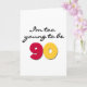 Jag är för ung för att vara 90! Om den 90:e födelsedagen verkar kräkas på dig, om du vägrar att bli äldre, åtminstone i andan, eller om du är tittar för en underbar gåva till den person som blir 90 år gammal och som kan användas hela året, så kommer du att kärlek denna svarta, röda och gult textdesign.