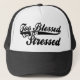 För välsignat för att vara stressad truckerkepsdesign. Ge en komplimang vår design med ett stort val av T-tröja, Hoodies, truckerkepsar, muggar, klistermärkear, mobila fodral, vykort, inbjudningar, knäppas och mer!