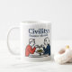 Civila: Varför inte! Börja din dag med kaffe och lite vanlig mark. Det här mugg har en lätt design med två personer - helt annorlunda och delar gärna friare - och den djärva men milda påminnelsen om att civiliteten inte är föråldrad, den är underskattad. Perfekt för morgonrutiner, kontorsdiskar eller annat utrymme där lite respit kan räcka långt. Oavsett om du är ensam eller pratar tvärs över skiljelinjen, så behållor det här mugg civilt (och koffeiniserat).