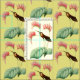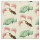 Mönster av en liten brun hummingbird perched på en tropisk växt med rosa blommor för ljus korall. Visat på ett ljust - gul bakgrund; valt "skräddarsy den" för att ändra bakgrundsfärg.