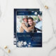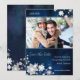 Elegant snö blommar, snöflingor, och blommigten virvlar runt i vit + lantlig marinblå bakgrund som illustreras på beställnings- fotobröllop spara datuminbjudningar. Festliga & nyckfulla vinterbröllopkort som du kan fullständigt skräddarsy med din egna uttrycka och bild. Underbar för din kommande GLAM VINTER som GIFTA SIG | INDIGOBLÅTT & VITFÄRGPALETTEN som GIFTA SIG | BOHO CHIC VINTERBRÖLLOP eller LANTLIGT VINTERUNDERLANDBRÖLLOP! ((Du kan finna de matcha bröllopessentialsna & favörerna i detta lager, brud- himmel. Kontakta ujean4791@gmail.com för beställnings- arbete och/eller koordinerande bröllopbrevpapper.)),