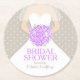 Den eleganta brud- klänningen med posyen av den lilor stylized roblommigten och grå färghjärta regnar disponibelt pappert underlägg för möhippan. Redigera dessa partyunderlägg med din egna hedra brud för att vara känt. Ideal för använda på ett möhippaparty eller flickaktigten som gifta sig pre, får tillsammans och matcher klänningbuketten som gifta sig den stationära uppsättningen. Unik design och grafik av Sarah Trett.