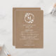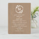En monogrambröllopinbjudan som presenterar en illustration av en blom- kran för vit på bästa. Personifiera med din initiala insida cirklar. Personifiera texten med specificerar av ditt tillfälle. Att uttrycka är från brud och brudgum samman med deras familjer. Bakgrund är inspirerat brunt papper.