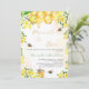 En vit och guldfärgad bakgrund med snyggt. Dekorerad med humla, smälter honung och honungskaka med blommigt, blommor och honung burk i gult. Med texten: Föräldrar till Bee är skrivna med ett modernt handskript i stil. Anpassa och lägga till namn för de föräldrar som ska vara.