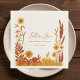 Lägg till en chic säsongstouch på din bröllopsfest med dessa hösttemade cocktailservietter. Med handmålade akvarellblommor i varma nyanser av rost, bärnsten och gyllengul, ramar de den romantiska texten "Fall in Love" med brudens namn och datum under. Den mjuka krämfärgade bakgrunden skapar en elegant bakgrund för den höstinspirerade designen, vilket gör dessa servietter perfekta för drinkar, desserter eller dukningar. En stilren detalj som knyter an till din höstbröllopsdekor, perfekt för rustika, boho eller landsbygdshögtider.