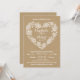 Eleganten yet avslappnaden, denna bröllopinbjudan är perfekta för någon naturälskare. Stylized snörelöv, pinecones, ekollonar, pilar och blommor bildar en hjärta med en lantlig bakgrund för kraft papperslook. Skräddarsy med din egna text. Original- illustration vid pj_design. Behaga kontrollen mitt lager för mer något liknande detta.