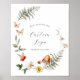 Anpassningsbar Tecken för din babydusch, med en krans av grönt, svampar och vilda blommor. Lägg till texten med hjälp av fälten.