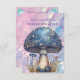 Den vänligaste inbjudan till din lilla flicka från 4e födelsedagen med en bakgrund av flerfärgad papper samordning med svampbilden/toadstooltoppen. Baksidan har alla detaljer om party med lite inslag att tillföra känslan av party