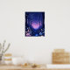 Vacker och färglös förändrad skog med svamp och fjäril. Väggkonst BLUE LILA Tema