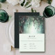 En vit vattenfärgsillustration av lush foliage i den framväxande grönten och mauve och lila, gnidig med fairy ljus och magiskt damm, dekorerar detta vår sommar-fall-bröllop-OSA kort med ett förtrollat skogstema. En elegant, en modern inbjudan till kompanjon, OSA kort, till ett sagoland bröllop. Perfekt för brider som kärlek den sagda skogsmiljön, den älvskog eller den älvträdgårdsTemat och framkallar grönt, mauve och guld. Ett elegant, ett modernt svarskort för ett sagolkort för bröllop. Perfekt för brider som kärlek den sagda skogsmiljön, den älvskog eller den älvträdgårdsTemat och framkallar grönt, mauve och guld.