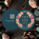 Den här eleganten, finstilt, Fantasy Enchanted Blommigt Garden-designen är perfekt för ett förtrollat skogstemat firande eller en trädgård party. Den här utformningen har inslag för rosa och lila blommigt i ram i grönt löv och guld accents mot bakgrund av tealbakgrund. Matcha objekt i vår butik för ett helt tema i party. Det guld som är aktuellt för den här punkten är INTE äkta folie.