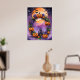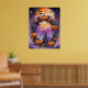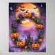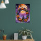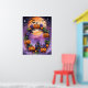Tillsätt ett magiskt finger till din Halloween-dekoration med denna pulserande poster som innehåller en vit andedräkt bestående av jack-o’-lyktor, lila blommor och höst löv. Den här teckningen fångar säsongens festande anda mot en bakgrund av ett fullt med fladdermus som flyger över och en spooky slottsilhuett. Perfekt för att få en läskig, men förtjusande atmosfär till vilket rum som helst.