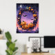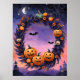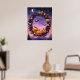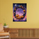 Lägg till magi till din Halloween-dekoration med den här fantastiska poster. Med en vackert skapad andedräkt av lila och blått grenar, försedd med glödande orange och blåpumpor, fångas den här teckningen upp den spooky som fortfarande är feg i Halloween. Måne, det flygande fladdermus och det spridda höst löv i bakgrunden, förbättrar atmosfären och skapar det en perfekt till era dekorationer i säsong.