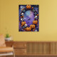 Den här fängslande poster har en festlig Halloween-andedräkt med leende jack-o’-lyktor, ärliga vita döskallar, mystiskt lila blommor och nattligt svart fladdermus mot en skrämmande mistiskt bakgrund. Perfekt för att lägga till ett pekdon med säsong i vilket utrymme som helst