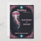 Den här fantastiska bröllopsinbjudan innehåller ett eateralt undervattenstema. Fokuseringen är en strålande rosa och en genomskinlig maneter som på ett skonsamt sätt flyter mot en djup bakgrund av mörken och ger upphov till en mystisk och säker ambians. Intrikera, korallliknande dekorativa blomningar i mjuk rosa och ram i kant, och ge en känsla av elegans och stollig. Överst och i grund tillför ornitala cirkulära motiv som liknar glowing orbs en aning celestial charm, som kompletterar oceanpaletten. Den övergripande utformningen ger en drömmande, annars världsomspännande, perfekt för en romantisk och unik bröllop firande.