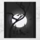 Den vackra skogen Halloween-natten, en svart och grått-silhuettmålning med flygande fladdermöss och en orm i träd-vyn