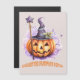 Gå in i en värld av stollig och magi med det här snygga hälsningskortet Halloween med frasen "Enchanted Pumpkin Patch". En leende jack-o’-lantern som är klädd i en häxhatt och som håller ett mousserande lila-häxa-trollspö ger en aning charm och lockbete till spooky-säsong. Perfekt till dem som föredrar söt framför kräsen och magi framför förödelse. Underbar för barn, pumpa älskare, och alla som njuter av en lätt Halloween-roligt med en magisk twist.
