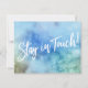 Behålla dina vänner och din familj och dina nya adress med hjälp av dessa enkla, elegant-annonskort. Oavsett om du är nylånad eller bara vill ha en unik design som gör att din stam kan hitta dig, är det här kortet tillräckligt mångsidigt för vem som helst. Den har typografisk grafik med söt som lyder "Ändra är Bra!" på framsidan och "Stanna i Touch!" på baksidan, med ett modernt, avslappnad, handskrivet skriptteckensnitt. Använda mallen fält om du vill lägga till all din egen information för att anpassa designen för din egen använda. Den vita typen placerades över en flerfärgad vattenfärgsbakgrund, särskilt tung på blått med grönt och bruna accenter. Om du hellre vill byta ut det mot en annan bakgrundsbild, så är det också möjligt! 105