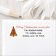 Dessa returetiketter skapades särskilt för ett byte av adress under julhelgen. Utformningen utmärker ett berömt Julgran med ord, "God jul från vårt nya ställe" skrivet längst upp. Du kan anpassa den här designen med adress. Copyright Kathy Henis