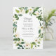 Meddelande om uppskjutning av bröllop för att informera gästerna om att evenemanget kommer att ändra datum. Anpassa med din egen text - kan användas för alla evenemang, som bröllop, bröllopsfest, baby shower, etc. Med vattenfärggröna grenar och vita blommor som sveper över designens hörn. Anpassa med din information eller klicka "Klicka för att anpassa ytterligare" för att redigera typsnitt, storlek och färger.