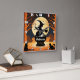 En häxa skakar hennes kauldron under ett glättande fullt måne, med silhuetter av flimrande fladdermus och nyfikna katter i närheten, som fångar det väsentliga i Halloween magi.
