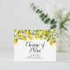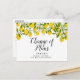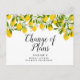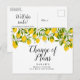 Detta moderna citronelement med grönskande typsnitt för ändring av planer kan anpassas med din information om bröllopsfesten har blivit uppskjuten. Baksidan har ytterligare detaljer, inklusive din webbplats, med din returadress och utrymme för mottagarens adress. Designad av Thisisnotme