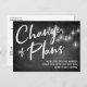 I den här söten har jag använt ett fet, modernt kalligrafteckensnitt för att skapa ett vitt typografiskt överlägg med texten "Ändring av plan". Bakgrunden var täckt med en bild som skildrar en texturerad kalkylpanel. Att lägga över det är ett kluster av rund vit vintage Edison ljus. Fyll i mallens blanksteg med dina detaljer om du vill anpassa designen. Alla lagrar lades till separat och lämnades olåsta till ge för maximal designkontroll. 111