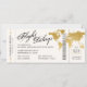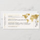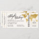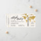 Förändring av datumangivelsen för ett destinationsbröllop som ser ut som ett boardingkort i flygplan biljett med en världskarta för elegant i utformningen av flygplansfolie för guld. All text och all bakgrund i färg är redigerbar så att du kan skapa din egen design med hjälp av den här mallen för ett unikt boardingkort som var designat med ett målbröllop eller ett resetema bröllop eller med firande för förnyelse av vow i åtanke. Besök samlingen Papper Grape Destinations Zazzle Designer för koordinerande artiklar.