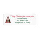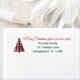 Dessa returetiketter skapades till att din ny adress under julhelgen. Ett rött, vitt och svart plaid Julgran visas till lämnat. Ord, "God jul från vårt nya ställe", visas längst upp och era uppgifter om adress visas i höger nedan. Dessa etiketter stämmer överens med mitt nya byte av platta och vikta julkort från adress. Copyright Kathy Henis