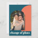 Låt dina gäster veta om förändringen i planerna med detta enkla påfågelblå och papayaorange informationskort.