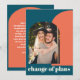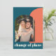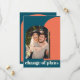 Låt dina gäster veta om förändringen i planerna med detta enkla påfågelblåa och papayaorange annonskort.