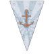 Ankare med kedjeillustration över grinig ljusblå bakgrund.