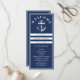 Nautiskt blått och vitt bröllopsprogram. Underbar för en marin (militär) eller ett sjö-hus bröllop. Utformningen har en fästpunkt som är inbäddad i en banderoll med texten "Förankrad i kärlek". Anpassa den med dina bröllop-detaljer.