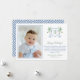 Julkortdesign med "Preppy Happy Holidays" med en bananplanta, i en blå-vit kruka. Framför denna finns en vapensköldform med utrymme för ett monogram med en enda bokstav. Vattenfargelementen var ursprungligen handmålade av mig med vattenfärger på 100% bomullspapper innan de skannades och arrangerades/stilades digitalt (vapensköldformen är av en annan konstnär). Baksidan har ett grekiskt nyckel-mönster, skapat digitalt av mig. Du kan ändra kontrastfärgen på baksidan (för närvarande en medelblå) genom att ändra bakgrundsfärgen på baksidan (klicka för att anpassa ytterligare under textanpassningsområdet. Detta tar dig till designverktyget.