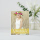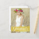 Meddela din examen till familj och vänner med detta anpassningsbara examenskort. Det har modern vit kalligrafi på en gul akvarellbakgrund. Anpassa detta examenskort med kalligrafi genom att lägga till ditt foto, namn och skolnnamn. Detta examenskort med foto är perfekt för gymnasie- eller högskoleexamen.