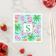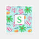 Personalisera dessa snygga nappar för strandscener med en initial och ge dem som en present. Denna strandscen med strandväskor, bikinis, palmer, solglasögon, strandväskor och strandhattar finns på andra produkter i min butik, PageCreativeDesigns.