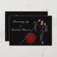 Halloween-inbjudan till bröllopsfest - Dessa inbjudningar är i en snygg svart nyans och har en rödhårig häxa på sig en lång, fladdrande svart klänning och svart hatt. Hon står bredvid sin bubblande mörkröda gryta och svart/grå kvast. Perfekt för alla Halloween-tema shower. Anpassa genom att ändra exempelvis namn till ditt eget. Du kanske vill ändra informationen för att passa andra Halloween-tema fester.