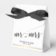 Svarta och vita bröllopsfavoritrutor (tält med svart band) med guld linjer och anpassade - du kan lägga till bridernas och triomens datum namn och bröllop.