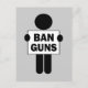 Denna design visar en demonstrant som håller en skylt med texten förbjuda vapen.