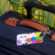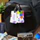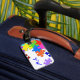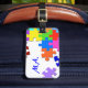 Det färgrika pussel lappar på bekläda och baksidaen. Din initialer på bekläda och din annan information på baksidaen.