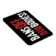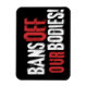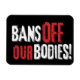 Visa ditt stöd för kvinnors höger till kroppsoberoende med den här "Förbud mot våra kroppar"-projicerande magnet som har ett glatt stil-vitt och rött teckensnitt på svart bakgrund.
